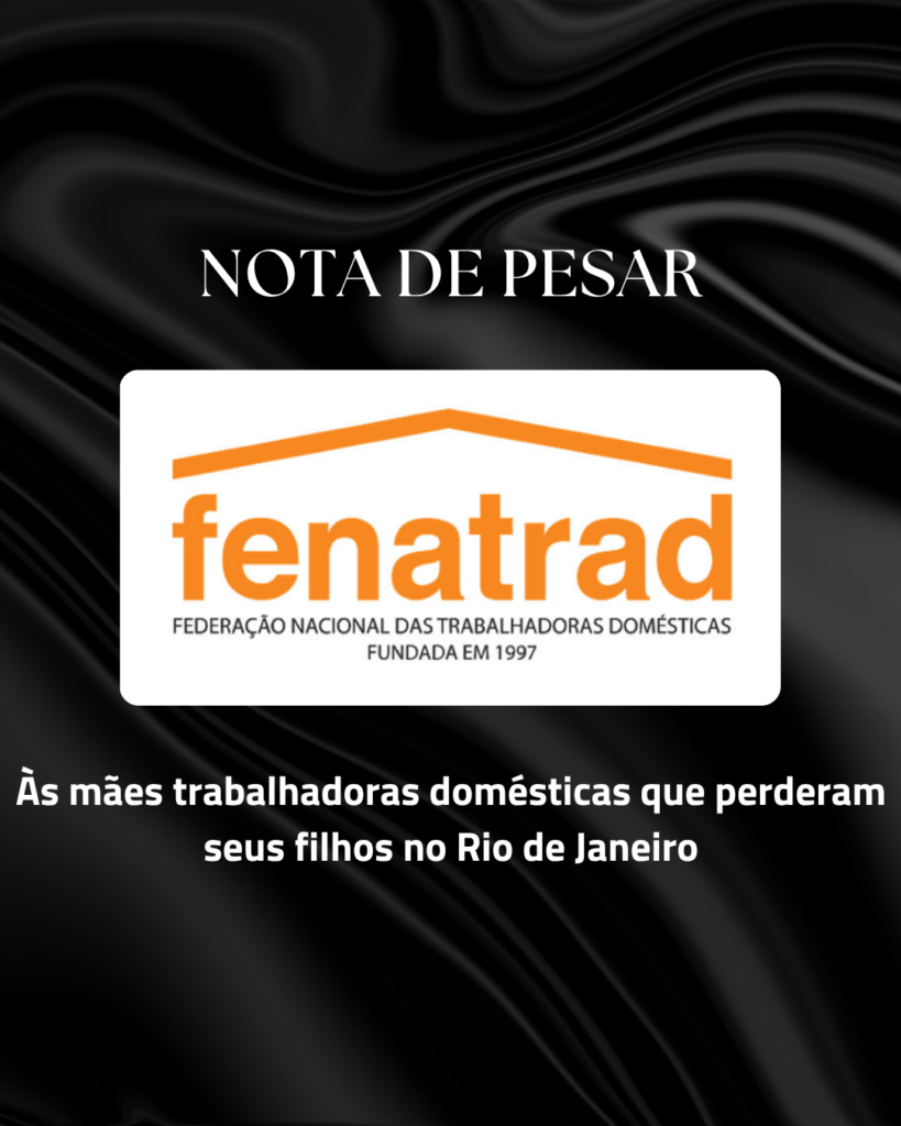 A Federação Nacional das Trabalhadoras Domésticas (FENATRAD) presta solidariedade às mães da periferia do Rio de Janeiro, e em especial às mães que são trabalhadoras domésticas e que enfrentam, neste momento, a dor da perda de seus filhos durante a operação realizada no estado.